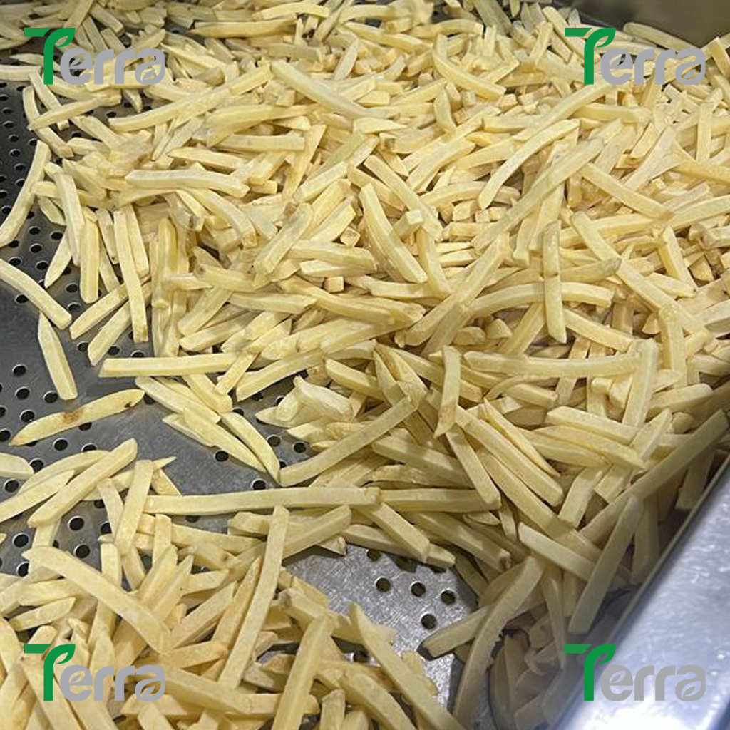 Our IQF French fries are made from premium-quality potatoes, carefully selected for their flavor and texture. These fries are available in various cuts and lengths, including straight, crinkle, and steak-cut, ensuring they meet diverse culinary needs. Frozen immediately after cutting and blanching, they retain their natural taste, golden color, and crispy texture when cooked. With no added preservatives and consistent quality, our IQF French fries are perfect for restaurants, catering, and home use.